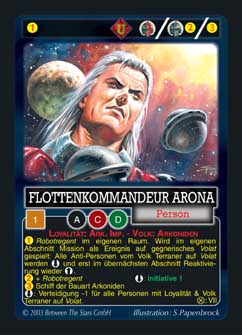 Arona ist Kommandeur der siebten Einsatzflotte der Arkoniden. Im Gegensatz zu den meisten Angehörigen seiner Rasse wirkt er keineswegs degeneriert. Sein stolzes Gesicht strahlt eine Tatkraft aus, wie sie im Arkonidischen Imperium sonst nicht mehr üblich ist. Seine hochgewachsene Gestalt mit dem weißen Haupthaar fordert Respekt ab. Im Auftrag des Robotregenten fliegt er mit seiner Flotte Volat an, um dort eine angebliche Revolte gegen das Arkonidische Imperium niederzuschlagen, und trifft dabei auf Perry Rhodan und Angehörige des terranischen Mutantenkorps.