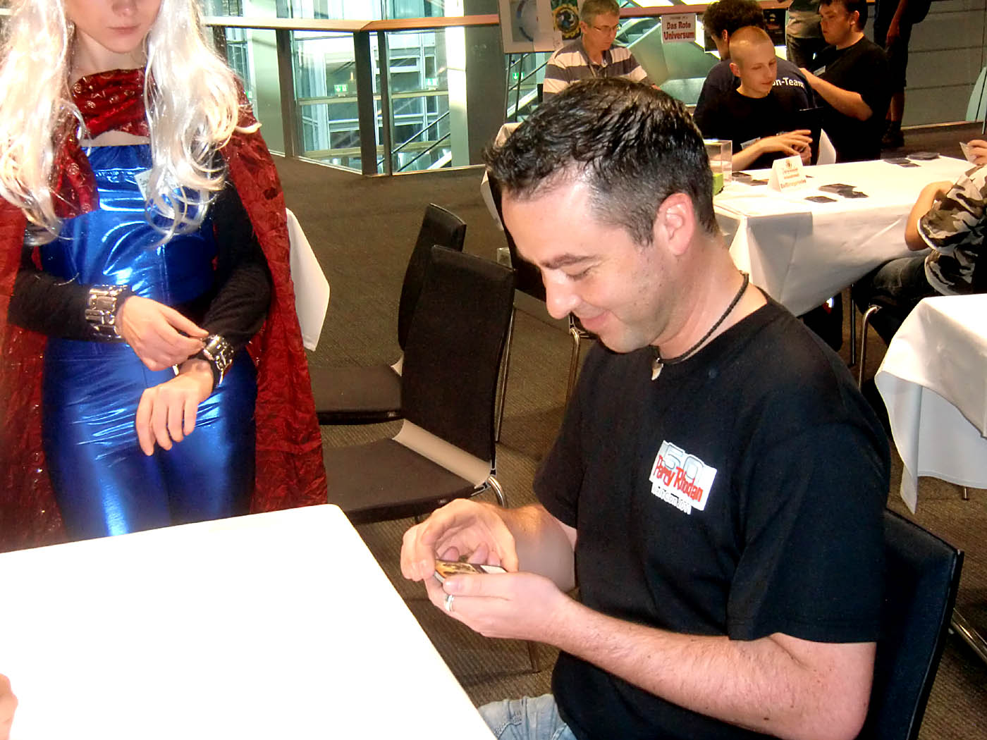 und das Turnier schließlich für sich entschied. Im Anschluss an seinen Sieg trat der Weltmeister dann gegen den PERRY RHODAN-Autor Marc A. Herren an, der zwar heldenhaft kämpfte, aber ebenfalls keine Chance
