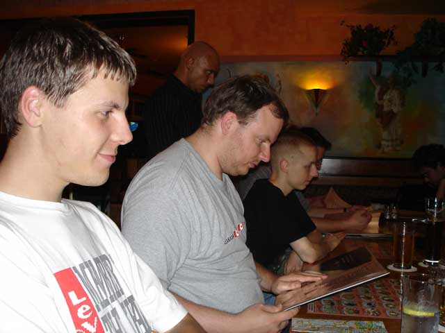 Bernhard und Ansgar: Wenn man sich an so kleine Karten gewöhnt hat, kommt man mit den großen (Speisekarten) einfach nicht mehr klar. |